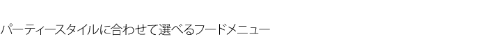 お気軽にお楽しみ頂けるフィンガーフードプランから、本格コースのビュッフェまで、ご参加者様のお好みやパーティースタイルに合わせてお選び頂くフードメニューをご用意しております。
